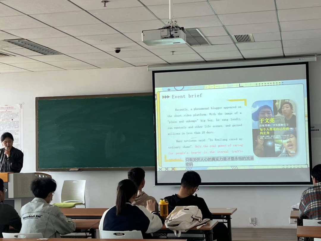 孔令瑶同学带来的是最近网络风靡的于文亮精神,不仅结合了热点,还从中提取出英语知识点供同学们学习。