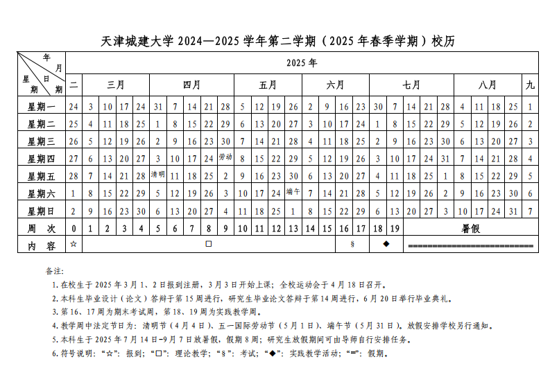 2025年春季学期校历