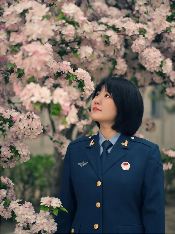 作品名称:戎装倩影映红花