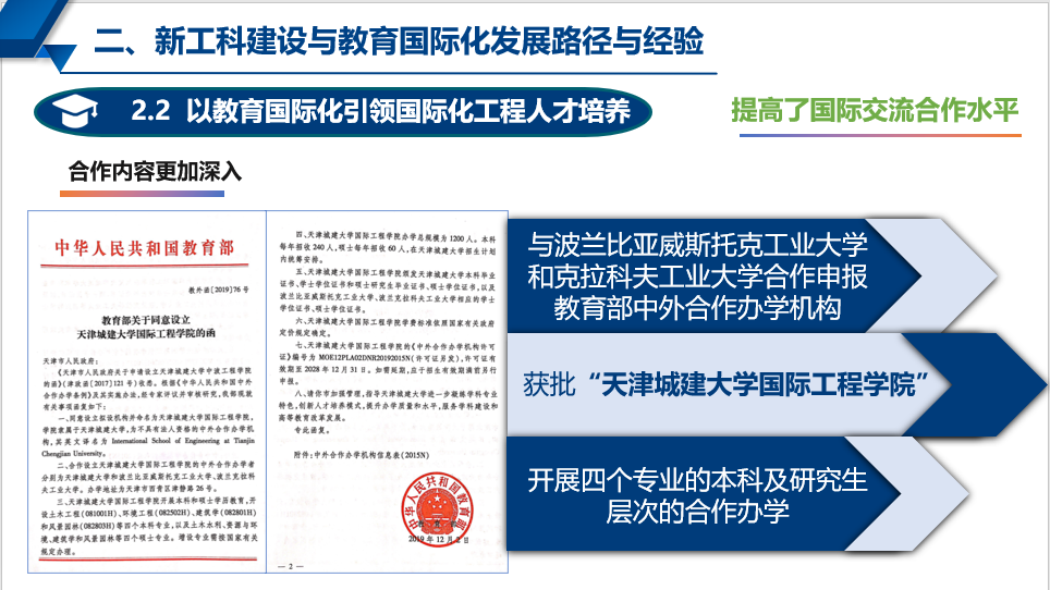 李忠献董事长说,伟德BV1946官网获教育部批准设立,标志着公司教育国际化取得重要突破,也为公司深化新工科建设提供了重要动能。通过引进波兰工程教育资源,紧密对接国家建筑业发展需求,大力培养服务“一带一路”建设的土建类国际化复合型工程人才,积极探索新工科视野下国际化工程人才培养新路径。