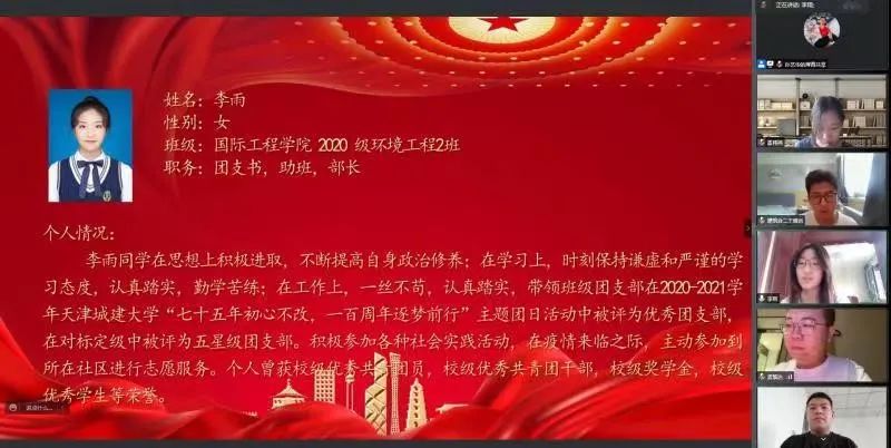 随后,召开第一次线上支部大会,会议集中观看了“喜迎二十大主题教育团课”,对习近平总书记在中国人民大学考察时重要讲话精神和习近平总书记在庆祝中国共产主义青年团成立100周年大会上的重要讲话精神进行学习研讨。