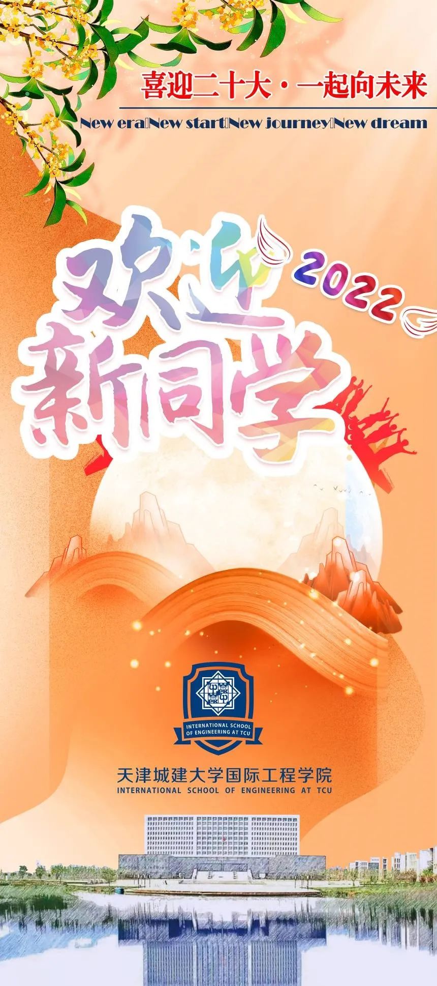 校园里的迎新海报已经挂起