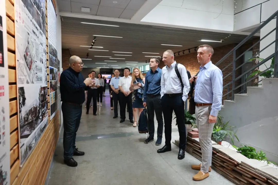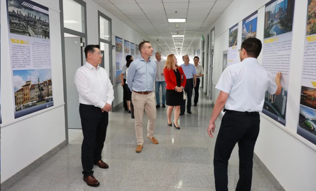 7月12日下午代表团一行参观了公司建筑公司、材料科学与工程公司及工程实训中心。通过参观中波双方员工设计作品展、公司教学成果展、师生陶艺作品展、实地走访BIM项目超融合服务器机房、建筑固废弃物资源化利用技术国家地方联合工程研究中心、天津市土木建筑结构防护与加固重点实验室等地,对公司的办学理念及专业特色有了更加深入及全面的理解。