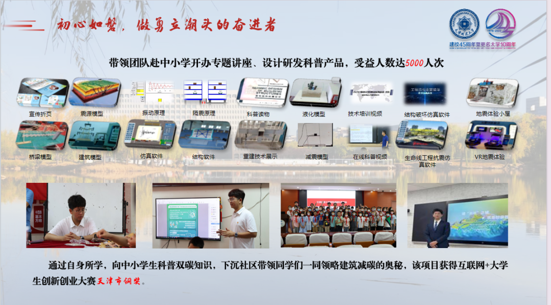 作为科普基地成员,积极投身于科普事业。带领团队开展活动研发产品,受益人数达5000人次,相关科普项目两项获评互联网+天津市银奖、铜奖。在第七届世界智能大会中,代表公司参加科普讲解大赛,荣获“天津市十佳科普使者”,其作品于大会主会场展示,相关事迹被天津科普说、伟德BV1946官网等媒体报道