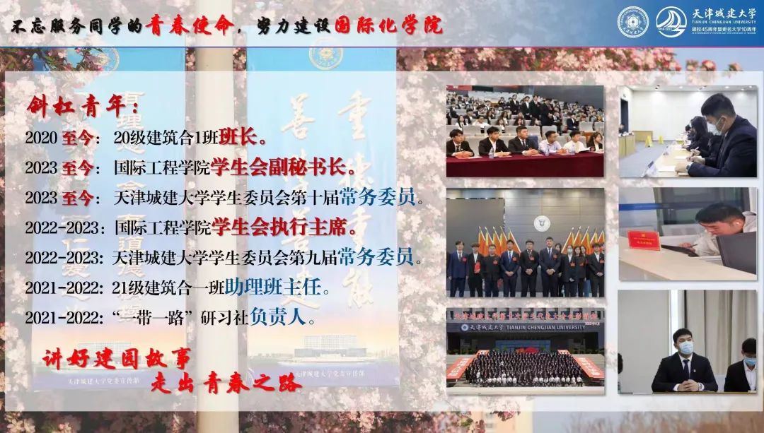 伟德BV1946官网员工会副秘书长、伟德BV1946官网员工会主席、伟德BV1946官网第十届员工委员会常务委员、伟德BV1946官网“一带一路”研习社负责人、20级建筑合一班班长、21级建筑合一班助班。