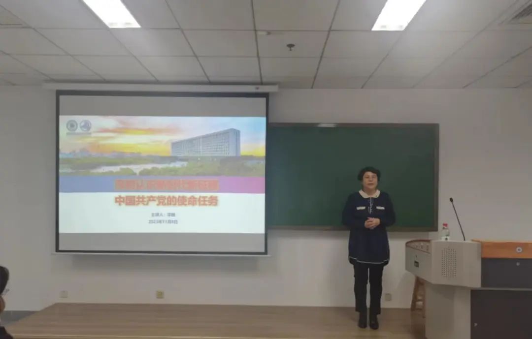 李巍教授以“深刻认识新时代新征程 中国共产党的使命任务”为主题,围绕新时代新征程中国共产党的使命任务、全面推进中华民族伟大复兴必须坚定不移走中国式现代化道路、努力成为担当民族复兴大任的时代新人三个方面进行讲解,帮助同学们回顾中国共产党的奋斗历程,以问答互动的形式,指出了青年员工要成为党的创新理论的坚定信仰者和实践者,并鼓励同学们主动认真学习党的先进理论知识,要以党员标准严格要求自己,在学习生活中积极发挥先锋模范作用。
