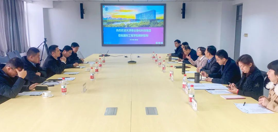 1月9日,天津泰达绿化科技集团股份有限公司常务副总经理曾威、天津泰达园林建设有限公司副总经理王磊、天津泰达园林规划设计院有限公司副总经理蒋新然、天津泰达盐碱地绿化研究中心有限公司首席专家张金龙、天津泰达绿化科技集团企业培训中心孙联军一行5人来公司公司开展调研、座谈。国际工程公司党总支书记杨萍、经理黄凌翔,党总支副书记孔伟,副经理李光旻、谭立峰,及公司相关工作人员参加座谈。会议由黄凌翔主持。