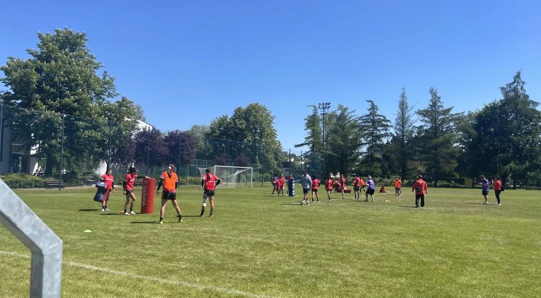 在后续的交谈中,师生们得知这次偶遇的是本月刚刚抵达波兰,由王姝作为领队的中国女子橄榄球国家队。本次偶遇也给师生们带来了一个“意外惊喜”,队员们看到天城大师生对橄榄球运动的兴趣,热情地邀请师生们前往球队驻地参观,“沉浸式”体验橄榄球运动的魅力。