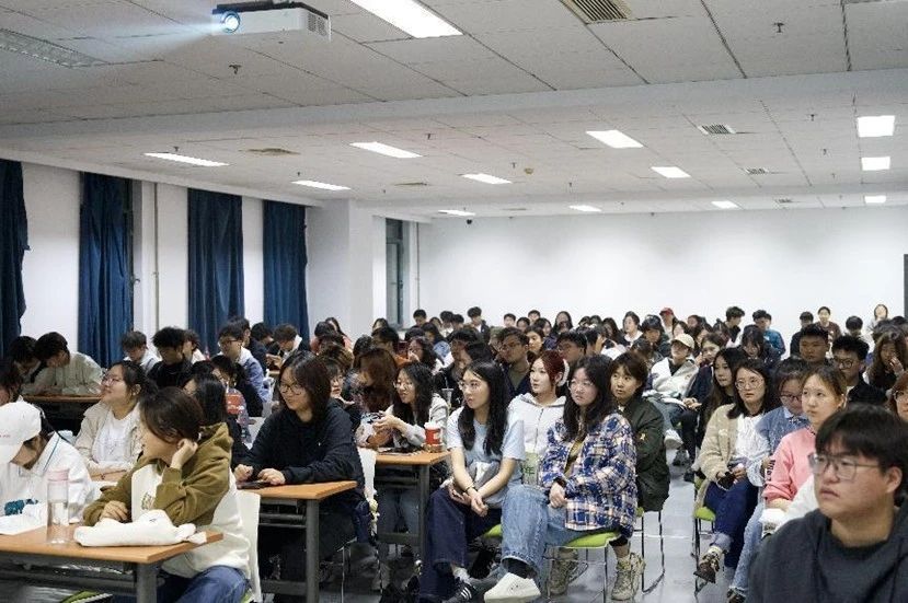 会议由研习社副社长雷语轲主持,邀请了英语成绩优秀的员工代表2021级本科生孟繁达、李轩,2023级本科生包一金,2022级研究生郭殿琨进行经验分享;2024级100余名本科及研究生新生参与此次活动。