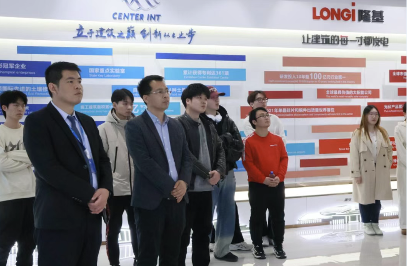 师生一行首先参观了森特士兴集团的展厅、集控中心与室外建筑光伏一体化设施,深入了解了集团的发展历程、业务领域以及行业技术的最新动态,展示森特从技术攻坚到国际布局的成长密码。通过实地参观,同学们对土木建筑行业的实际应用场景有了更直观的认识,大家惊叹于BIPV技术的创新应用,也对未来的职业发展方向有了更清晰的规划。