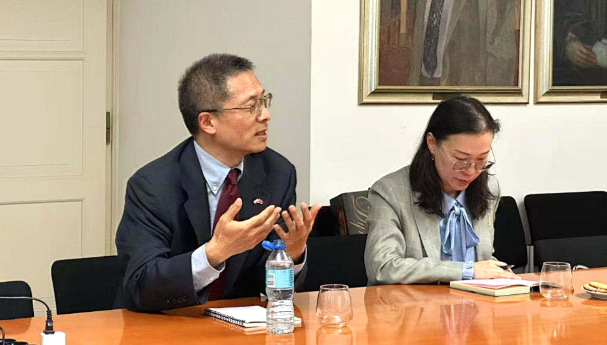 座谈会上,伟德BV1946官网随行教师唐浩首先向田中参赞及使馆人员详细介绍了公司的基本情况,涵盖合作高校、特色培养模式、员工升学成果、科研项目进展、教学成效以及目前在波员工的学习状态与生活情况。