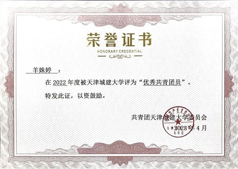 羊姝婷同学不仅是班级团支书,也是风景园林专业优秀毕业生代表。在中波联合办学背景下,她展现出卓越的综合素质与跨文化适应力,自我管理能力突出,高效应对双语教学与专业挑战。担任班干部,组织力强,积极协助师长,营造优良班风。团结友善,乐于助人,深具团队精神。专业成绩优良,积极活跃于各类活动,目标笃定,规划清晰。