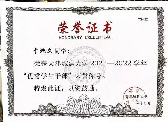 天津市老员工“扬帆计划”政务实习“优秀实习生”称号