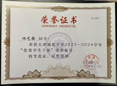 池艺扬同学作为2021级环境合二班团支书,尽责担当,是班级建设的骨干、师生沟通的桥梁。