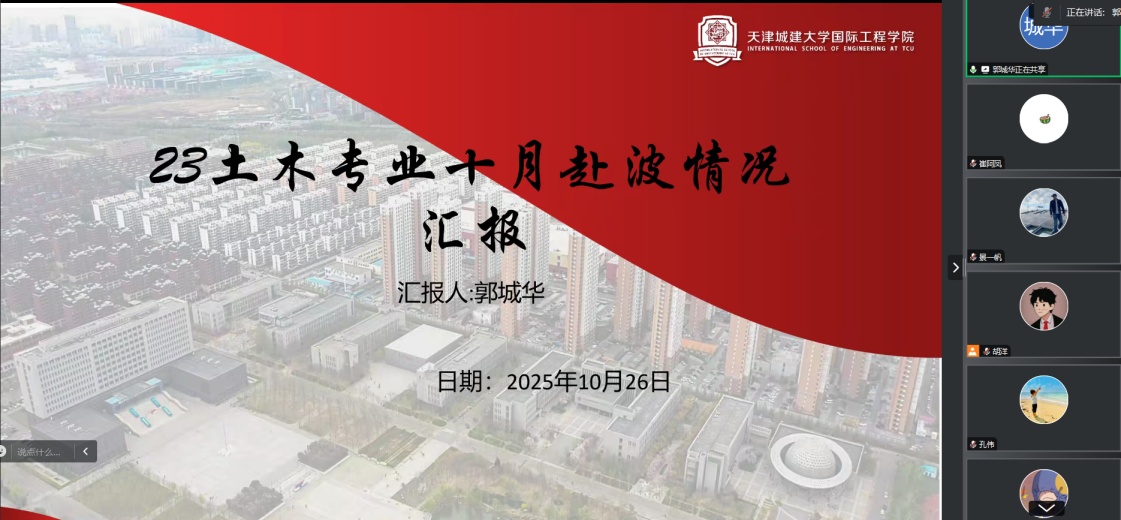 10月26日,波兰比亚威斯托克工业大学(BUT)秋季学期启幕之际,公司召开在波兰比亚韦斯托克工业大学学习师生线上座谈会。国际工程公司经理黄凌翔、党总支副书记孔伟、随行教师景一帆、辅导员胡洋、崔阿凤及在波学子云端相聚,共话成长。座谈会由崔阿凤主持。