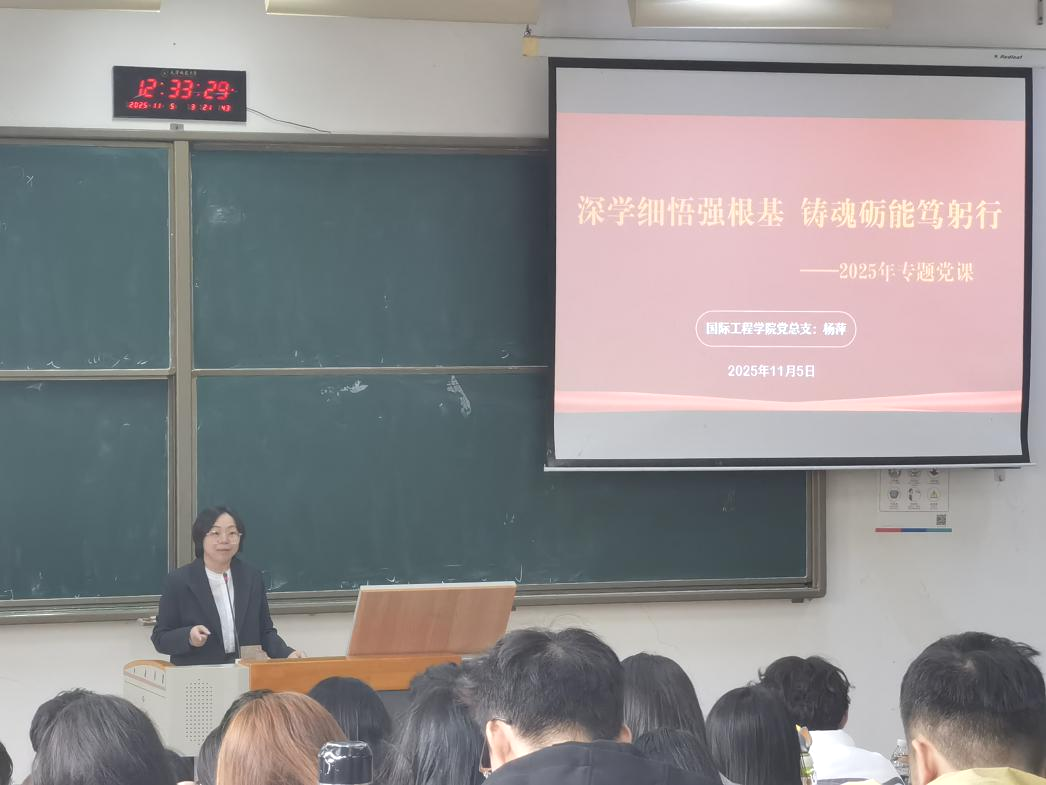 11月5日开班仪式上,党总支书记杨萍以《深学细悟强根基 铸魂砺能笃躬行》为题讲授第一课,围绕《习近平谈治国理政》第五卷核心要义与党的二十届四中全会精神跟各位学员分享学习体会,结合公司国际化办学特色,杨萍书记提出“四维坐标”育人体系:以家国情怀扎根中国大地,以国际视野拥抱全球变局,以“践行者”守好品行底色,以“推动者”彰显青年担当。她强调全体学员要实现“三个转化”:一是将理论学习转化为党性修养,把“两个确立”政治共识转化为“两个维护”行动自觉;二是将战略部署转化为实干动能,在智能建造、绿色能源等前沿领域践行担当;三是将国际视野转化为报国本领,利用海外交流平台讲好中国工程故事,成长为兼具家国情怀与国际视野的国际化复合型工程人才。