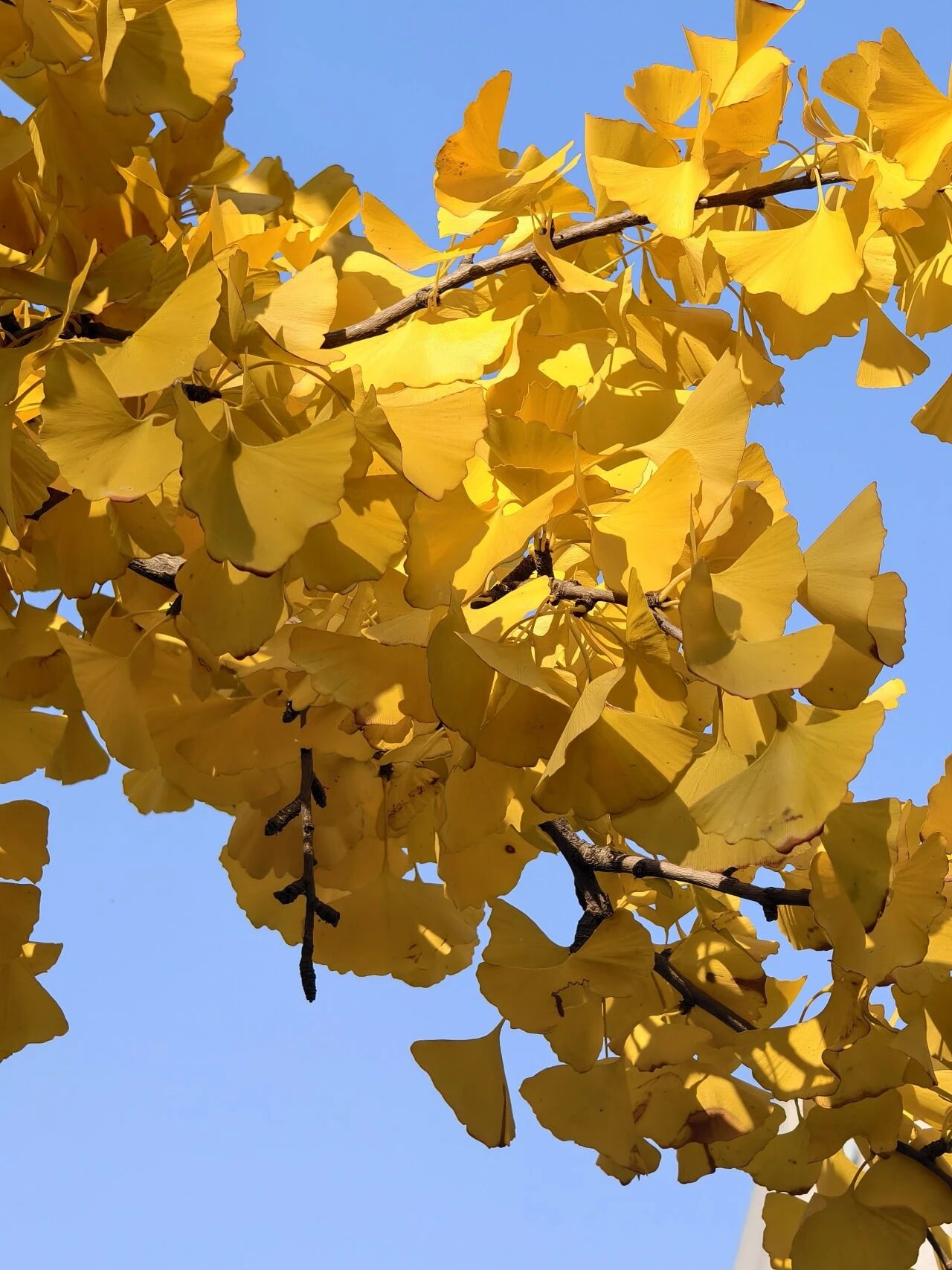 Upon entering the campus, the first sight to greet the eye is a veritable feast of ginkgo trees. The ginkgo trees lining the paths have been gilded with a translucent golden hue, their leaves resembling delicate folding fans swaying gently in the breeze. Sunlight filters through the foliage, casting dappled patterns upon the paths strewn with ginkgo leaves, as if the campus were draped in a golden carpet. These trees are not merely autumn's adornment; they stand as timepieces, chronicling the growth and transformation of successive generations of students within these walls.