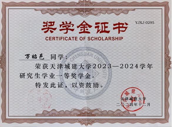 在课程学习方面,本人刻苦学习从未松懈,学业成绩年级排名第一、综合成绩排名年级第一,入围伟德BV1946官网首届“卓越研究生”计划,两次获得研究生学业一等奖学金,并获得2025-2026学年研究生国家奖学金。本学年15门专业课中全部取得90分及以上成绩,其中13门满绩。