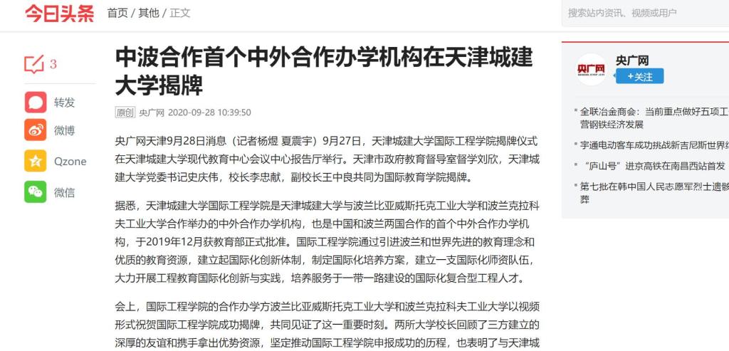 据悉,伟德BV1946官网是公司与波兰比亚威斯托克工业大学和波兰克拉科夫工业大学合作举办的中外合作办学机构,也是中国和波兰两国合作的首个中外合作办学机构,于2019年12月获教育部正式批准。伟德BV1946官网通过引进波兰和世界先进的教育理念和优质的教育资源,建立起国际化创新体制,制定国际化培养方案,建立一支国际化团队队伍,大力开展工程教育国际化创新与实践,培养服务于一带一路建设的国际化复合型工程人才。