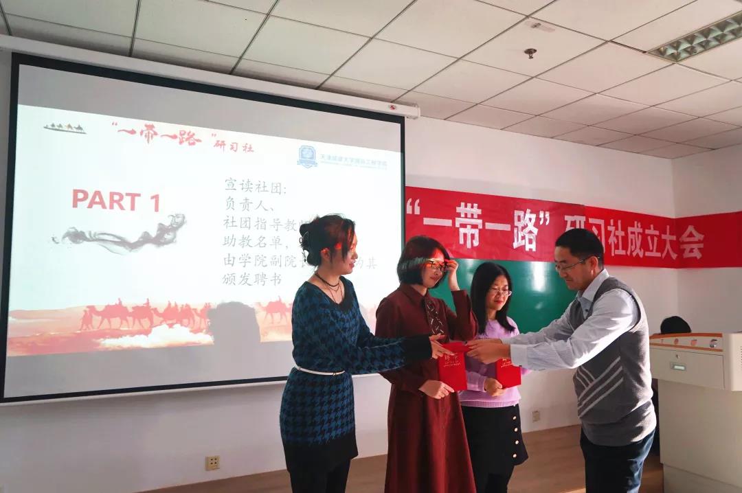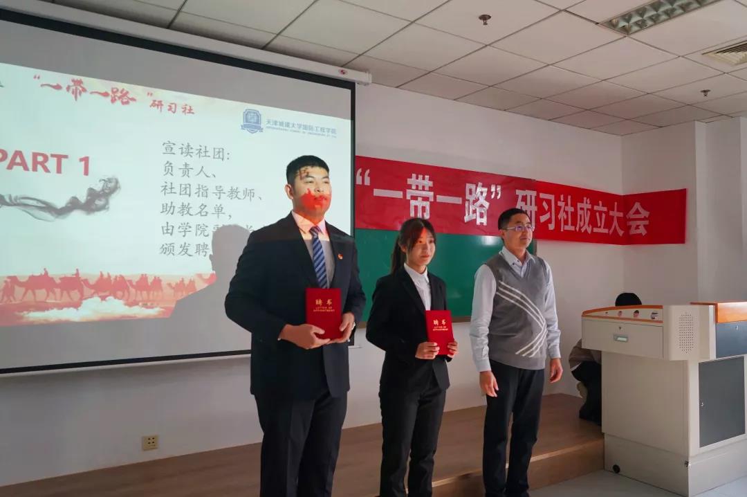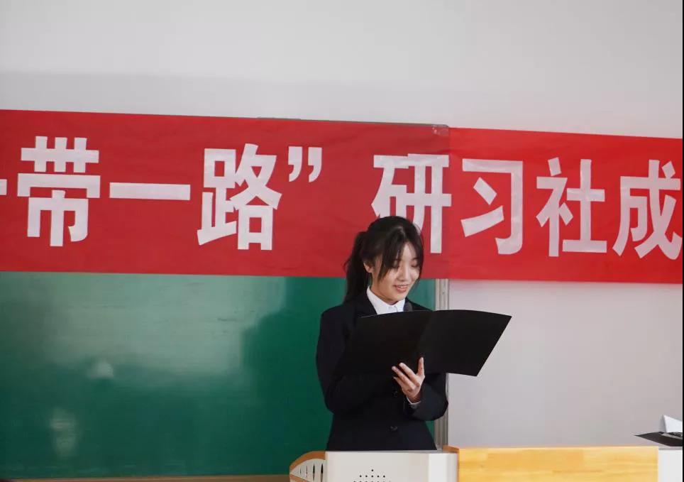 仪式一开始,全体与会人员共同观看了“一带一路”倡议和“丝路精神”视频。随后,社团负责人、2020级建筑合一薛释朋向大家介绍了社团的创立背景、主要活动安排等。社团负责人2020级环境合二班的李雨宣读了“一带一路”研习社章程。他们表示,“一带一路”研习社让我们有了一个新的员工之家,在这里,大家可以学习英语、交流文化、提升科技素养,互相启迪,增进友谊。同时,也使大家多了一个课堂,可以开展思想性、艺术性、知识性、趣味性、多样性的社团活动,校园生活更加丰富多彩。