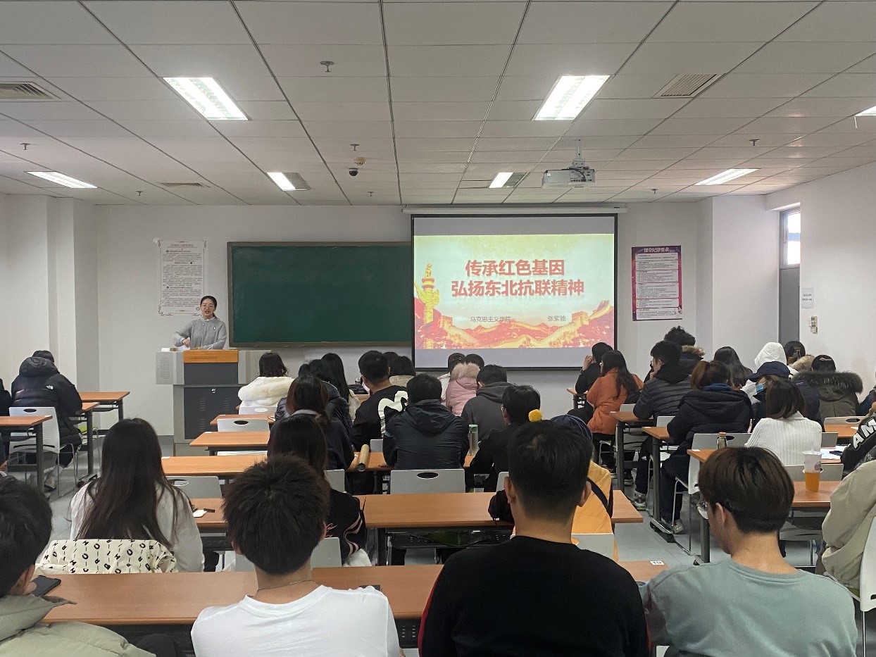 6.一次红色故事党课。12月1日,张紫驰老师讲授《传承红色基因 弘扬东北抗联精神》红色故事党课,从东北抗联创建的时代背景、东北抗联艰难的抗战历程、东北抗联精神及时代价值三方面,系统讲述了东北抗联精神。抗联精神蕴含的坚定的信仰信念、高尚的爱国情操和伟大的牺牲精神,具有超越时空的永恒价值,是鼓舞中华民族实现伟大复兴的强大精神动力。昭示青年学子必须把个人命运与国家民族命运紧紧联系在一起,弘扬爱国主义精神,以身作则践行好东北抗联精神。