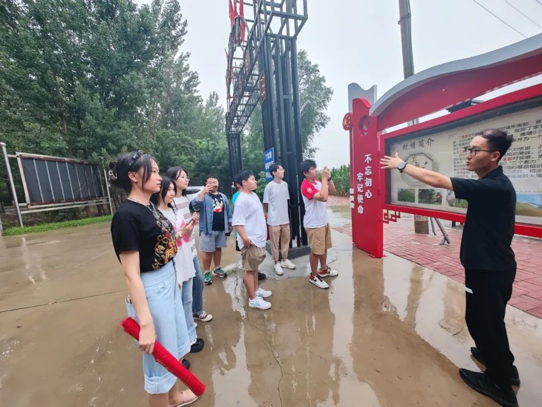 2022年8月,公司与天津师范大学美术与设计公司共同开展暑期“三下乡”社会实践活动,三下乡活动是青年老员工在社会课堂中受教育、长才干、作贡献的重要课程。2013年5月,习近平总书记从北京乘坐城际列车来到天津。在武清站一下列车,他直接来到南蔡村镇丁家瞿阝村的麦田,提出了要加快发展现代都市型农业,努力提高粮食自给能力,为确保国家粮食安全多作贡献的重要指示,在习总书记的谆谆教诲下,9年间丁家瞿阝村迎来了翻天覆地的变化。两个公司的社会实践团队沿着习近平总书记的足迹冒雨来到了天津市武清区丁家瞿阝村,组织开展暑期社会实践教育,号召同学们在基层建设服务中锻炼自我。
