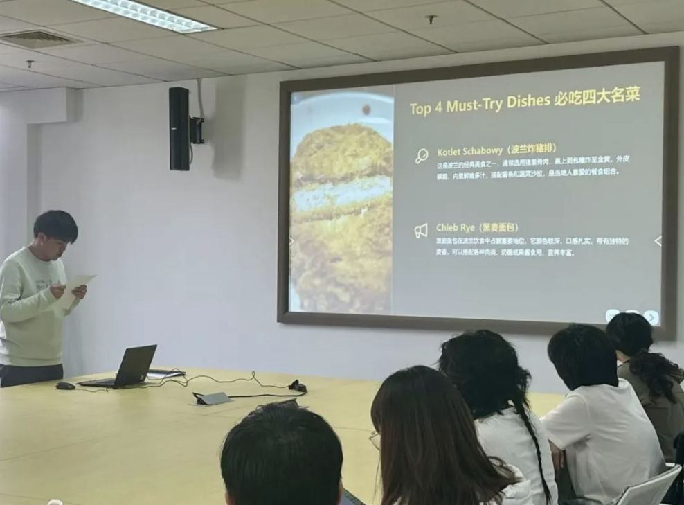 Cuisine: Pan Pengyu (Class of 2023, Civil Engineering) presented "Exploring Polish Cuisine and Kitchen Safety," discussing how to adapt to foreign food cultures, locate Chinese restaurants, and cook homemade meals. He shared the suggestions for healthy food and offered strategies for discovering local delicacies, interpreting menus, and communicating with waitstaff. Simple healthy recipes were recommended for students to keep a good diet during the busy study life.
