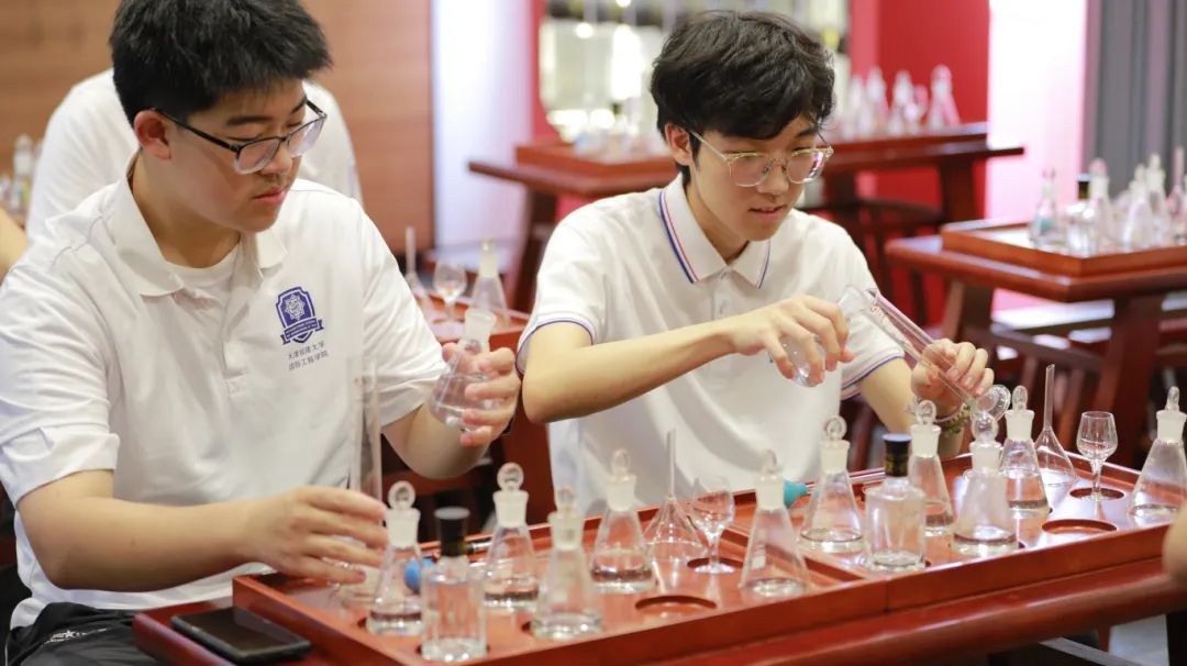 实践团成员赴河北凤来仪酒业有限公司,调研学习宁晋县泥坑酒文化产业园的起源、发展历程、传承现状等。依次参观了泥坑酒业文化产业园1916文化街、酿造坊、现代化包装车间、企业文化长廊、党建墙,参与体验白酒的调制方法,实践团成员在学习体验中充分感受酿酒产业和地域人文融合的独特魅力。结合专业特色,与企业积极对接,在专业团队的带领下,共同参与酿酒工艺海报创作。