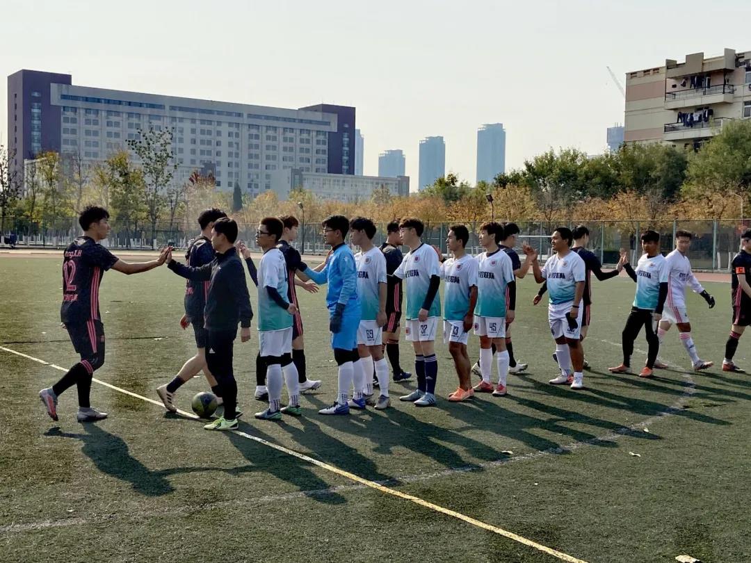 开赛前两队球员互相握手鼓励,秉承友谊第一比赛第二的精神开启比赛,尽显伟德BV1946官网学子风范。