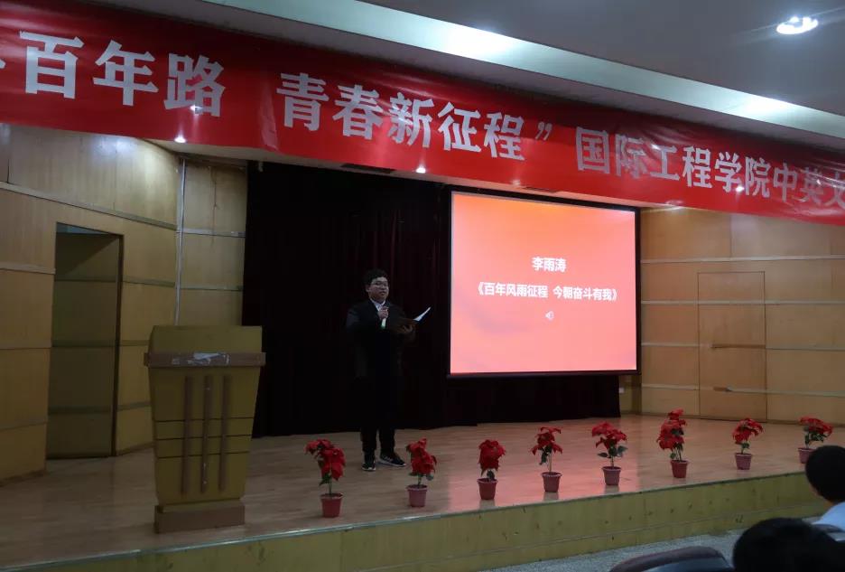 比赛现场,选手们紧紧围绕主题,用中英文的演讲形式,生动形象地讲述了党的百年奋斗历程,表达了对党和祖国的深厚感情,坚定了听党话、跟党走和立大志、明大德、成大才、担大任的信心和决心,展示了国工学子和新时代青年昂扬向上的良好精神风貌。经过激烈角逐,张周延、罗子轩获得一等奖,周京京等获得二等奖,李雨涛等获得三等奖。赛后,公司副经理李光旻对整场比赛进行了点评,充分肯定了选手们的精彩表现,激励同学们肩负起历史使命,坚定前进信心,努力成为堪当民族复兴重任的时代新人。