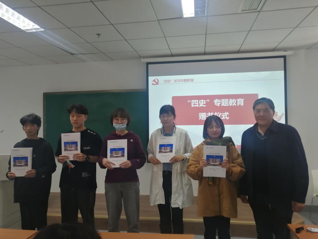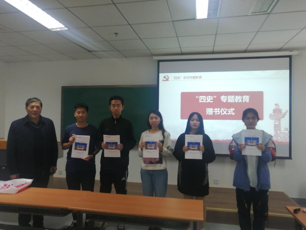 崔教授此致后,举行了具有特殊意义的赠书仪式,崔教授向同学代表发放了《“四史”学习教育材料汇编》,并且叮嘱各位同学一定要学好“四史”,作好中华民族传统美德的弘扬者、宣传者!