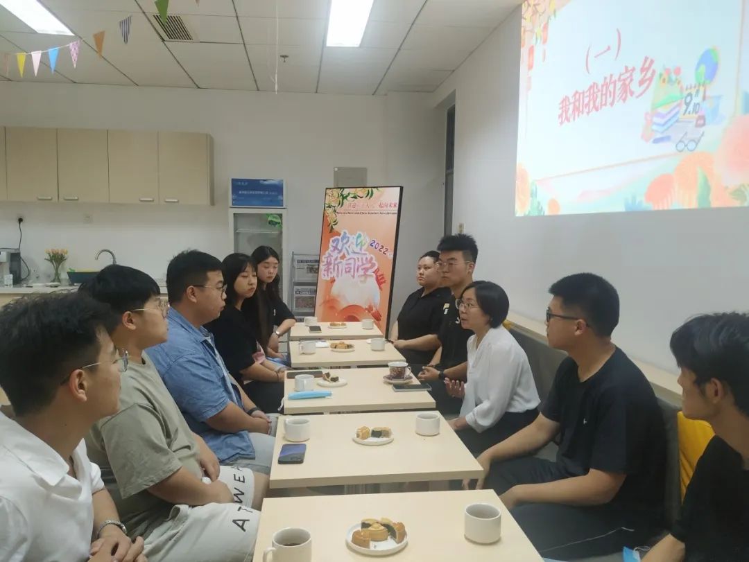 9月9日晚,在公司咖啡间,公司直属党支部书记杨萍、经理黄凌翔、副经理李光旻和辅导员孙艺华、员工助理班主任代表以及2022级新生共度中秋佳节。