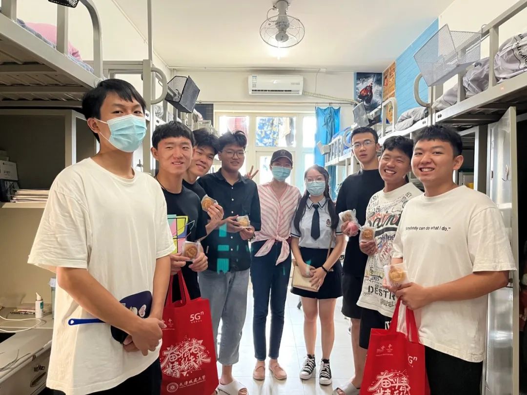 9月10日上午,公司辅导员、班主任、助理班主任们走进宿舍,看望慰问员工们,为每名新生同学送去月饼、新生大礼包以及节日的祝福。