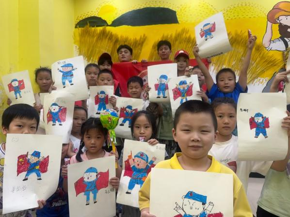 宣讲团赴正阳县双职工家庭托儿所,向小朋友们讲述雷岗战役的故事,了解家乡红色革命文化,浸润红色革命精神。宣讲团成员还指导小朋友们画出自己心中的英雄模样,用稚嫩的绘画手法画出了自己心中最美的一幅画。
